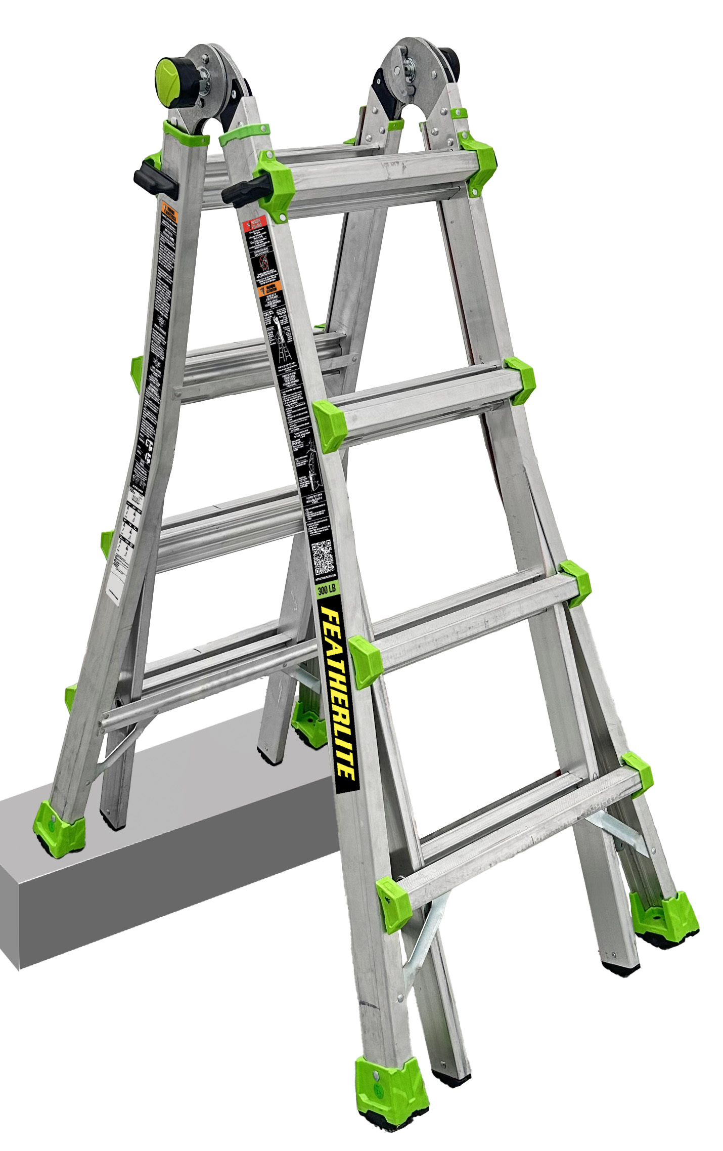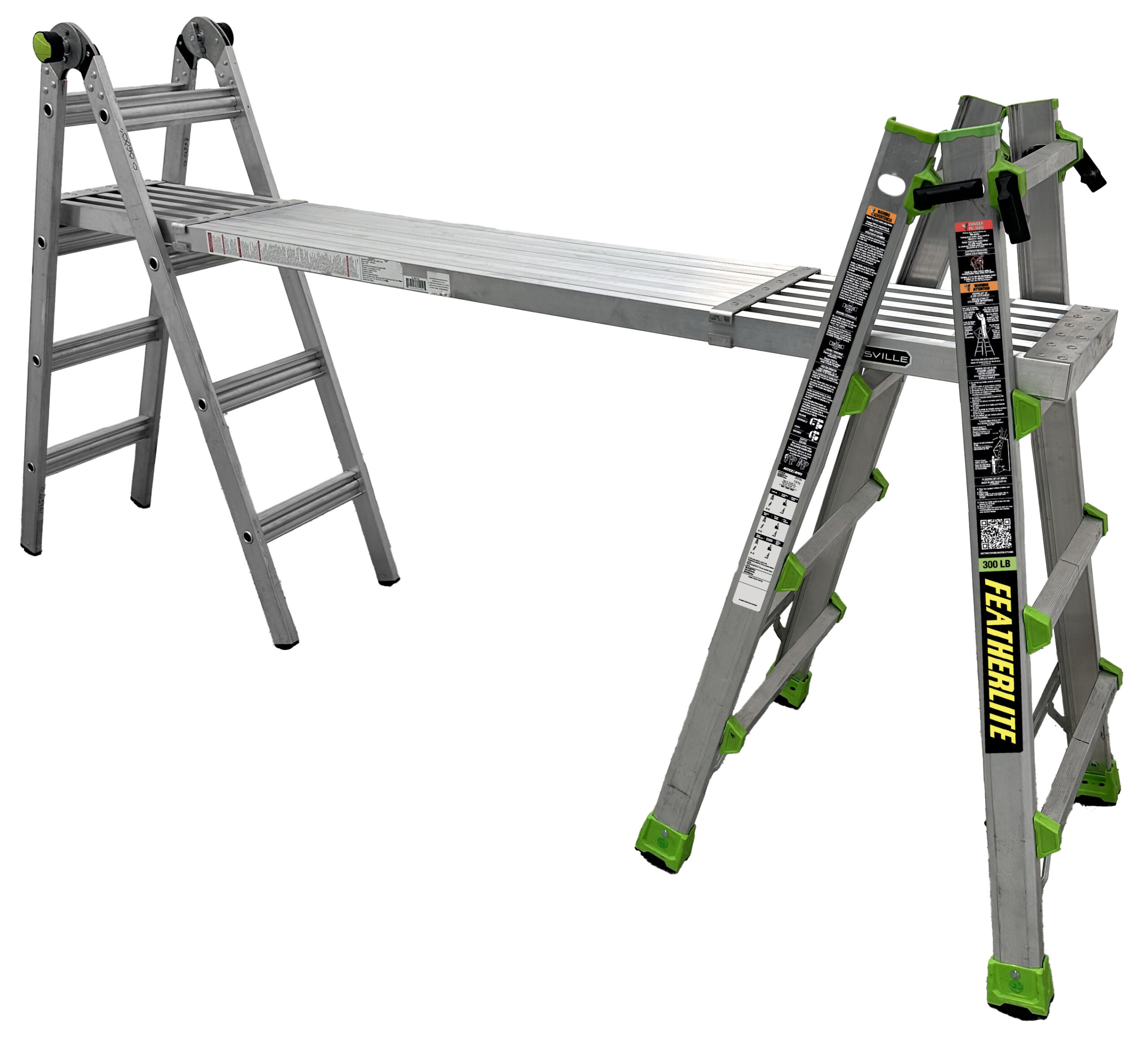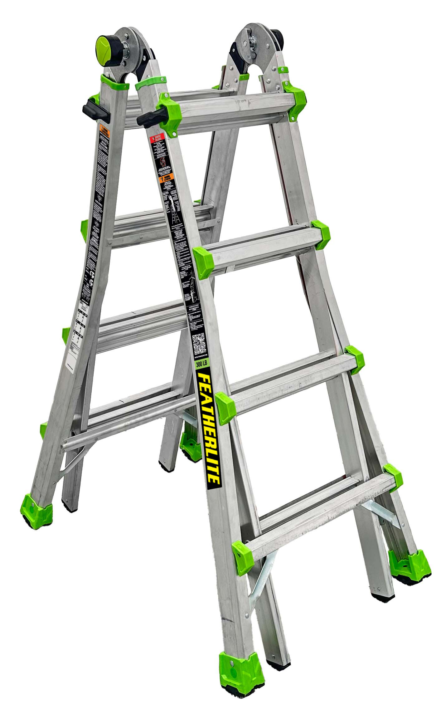 This Featherlite multipurpose ladder has a 300lb load capacity, rated Type IA. This Ladder is built for versatility and strength. With its 6-in-1 design, it easily converts into a step ladder, extension ladder, stairway ladder, Wall ladder, Twin ladder or scaffold support. Making it the perfect tool for contractors, painters, and DIYers who need reliable performance in one compact solution.The Featherlite FL-2099-18 Multipurpose ladder meets or exceeds the safety standards set by ANSI, CSA, and OSHA.